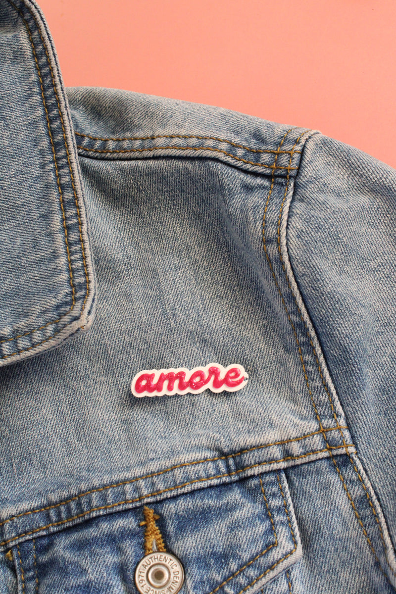 Moule broche AMORE. Effet bombé brillant sur les lettres.