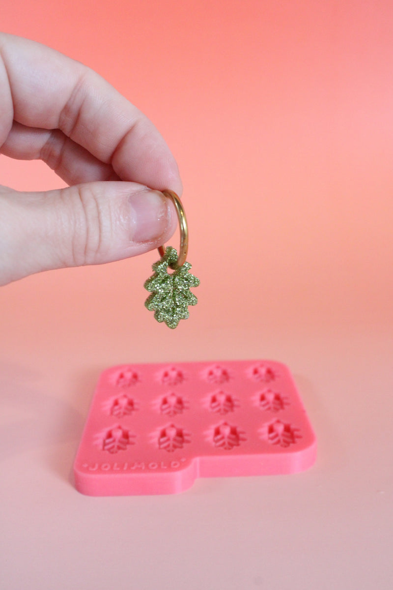 Oak leaf tassel mold , perfect for your delicate autumn collections. 12 small oak leaves with recessed veins, easy to unmold. This silicone autumn tassel mold is ideal for adding variety to your jewelry creations, earrings, or pendants.