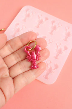 Moule silicone pampille HOMARD pour créer des bijoux en résine, jesmonite ou pâte polymère. Finition bombé brillant. Passe au four max 200 degrés.