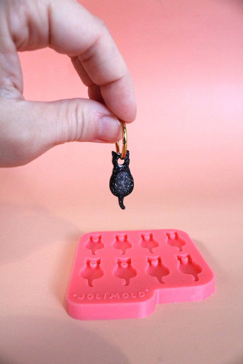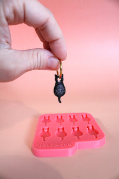 Adoptez ce moule pampille chat pour créer des boucles d'oreilles adorables et intemporelles! En chat noir pour Halloween, ou coloré pour toute l'année, ce moule silicone chat restera un indémodable de vos collections bijoux.