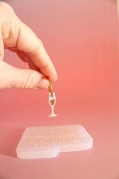 Le moule silicone pampille flûte de champagne est l'outil indispensable pour créer vos propres pampilles champagne en résine, pâte polymère ou pâte Fimo. Ce moule champagne reproduit fidèlement l'élégance d'une flûte à champagne avec un effet liquide à remplir et apporte une touche festive et raffinée à vos bijoux. Idéal pour réaliser des pendentifs champagne, des boucles d'oreilles graphiques ou des pampilles pleines de caractère pour vos créations de fête.