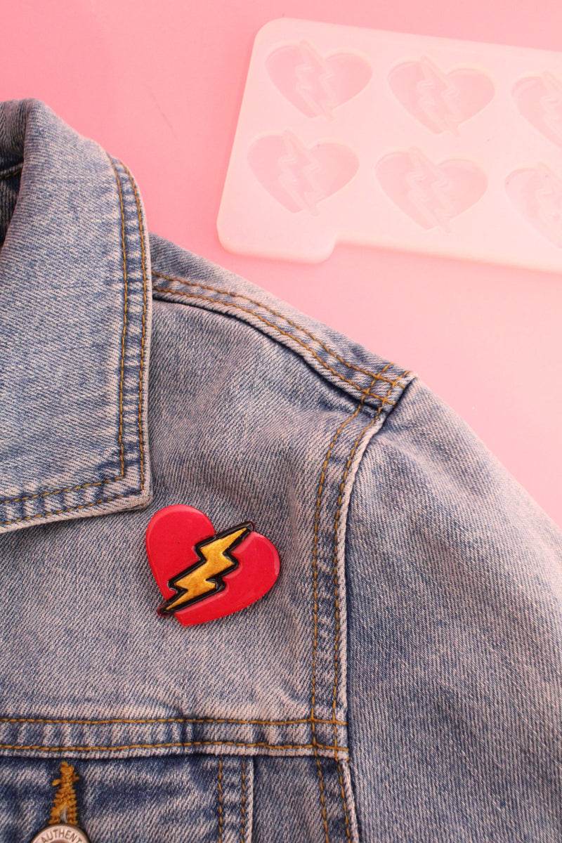 Le moule silicone coeur AMOUR ECLAIR vous permet de créer une broche au style contemporain. Réveillez votre collection Saint Valentin avec une forme qui a du caractère.