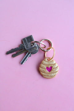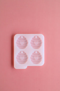 Moule silicone en forme de ruche avec coeur, idéal pour créer d'adorable porte-clés ou des médailles animaux personnalisées.